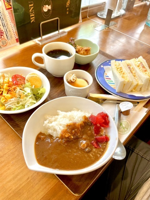 よさこいを見に行った時、久しぶりにランチしました。夏の繁忙期間中は1番人気のオムライスセットがお休みになっていて残念でしたが、2番人気のコンピレーションセットに大満足!炒めた野菜のおいしさがしっかり味わえるミートスパ、ポテトとレタスが挟まれたホットサンド、カリっとジューシーな唐揚げ、ドレッシングが野菜によく合うサラダ、しっかりコーヒー風味のゼリー、選べるドリンクまでついて税込850円は感動プライスです☆相方さんが頼んだミニカレーセットのカレーと卵サンドもGOOD♪プリンのもちもち食感が楽しかったです。2階にあるので窓際席からアーケード内を行きかう人たちを眺めながらゆっくりできますよ。学生時代から変わらぬ安定したおいしさでした!モーニングもおすすめです。 (投稿:2022/08/13 掲載:2022/08/16)