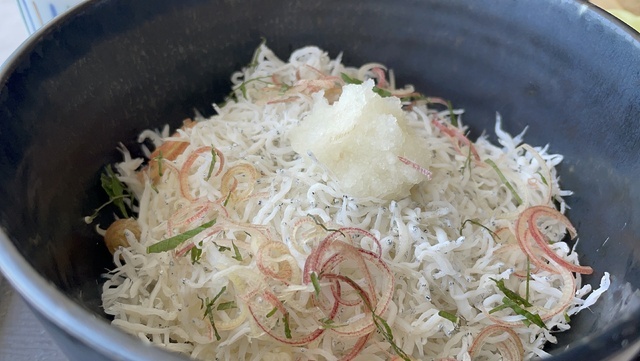 今回こうちドンのおかげで機会ができました。 こちらは11階にある展望レストラン。駐車場は反対車線にもあります。入りエレベーターで上がり、入ります。特に窓際は景色がなかなかいいです。 かまあげちりめんを使ったセットをはじめ和洋中様々とりそろえています。 注文したかまあげちりめん丼はちりめんじゃこと少しだけ生姜。備え付けのポン酢をかけていただくと美味しい丼。セットで来た米茄子はホテルなどでも見かける固形燃料のおかげでアツアツで美味しくいただけます。 (投稿:2023/04/09 掲載:2023/04/10)